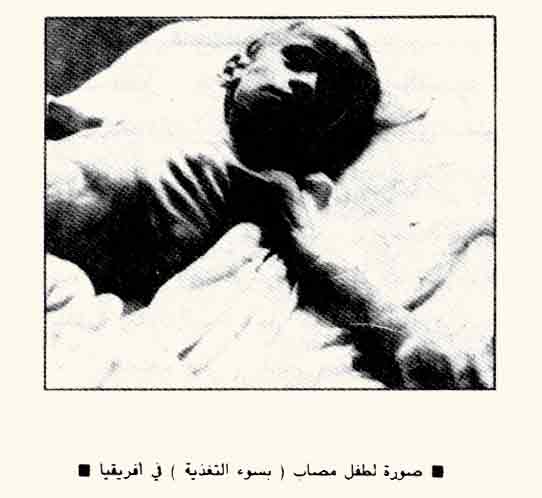 طفل مصاب (بسوء التغذية) في أفريقيا [ ص: 37 ] المتزايد يضاف إلى قسوة هـذه العوامل الاقتصادية والاجتماعية. كما هـو مبين في الجدول السابق، خشونة المناخ والجغرافيا، فأكثر أراضي هـذه الدول غير مضيافة، وأغلبها واقع في ما يسمى بحزام المرض، ومعرض تعرضا شديدا للكوارث الطبيعية، وسكان هـذا الحزام هـم أشد المحرومين بين المحرومين في العالم، كما سماهم الرئيس الفرنسي فرنسوا ميتران ؛ فهم ضحايا مزيج من القوى الاقتصادية والجغرافية والسياسية والإدارية لا يستطيعون السيطرة عليها.