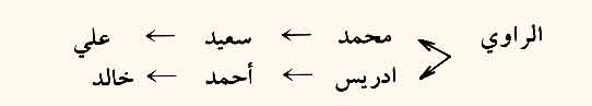 كما يبين لطلبته الرموز المستعملة في السند أمثال: ثنا - وهو اختصار لحدثنا – وأنا، ونا – اختصار لأنبأنا أو أخبرنا و: ح: تقرأ: حاء، وهي حاء التحويل، تفيد عودة السند إلى الراوي، كما في المثال التالي: قال الراوي: ثنا محمد، أنا سعيد، عن علي، ح ثنا إدريس، أن أحمد قال:
